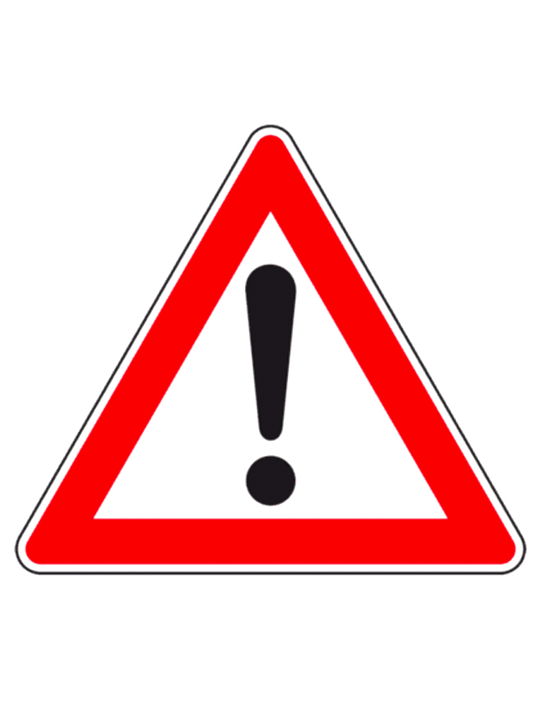 Verkehrsschild warnt mit einem Ausrufezeichen vor einer Gefahrenstelle. Straßenzulassung, Reflexionsklasse RA 1.