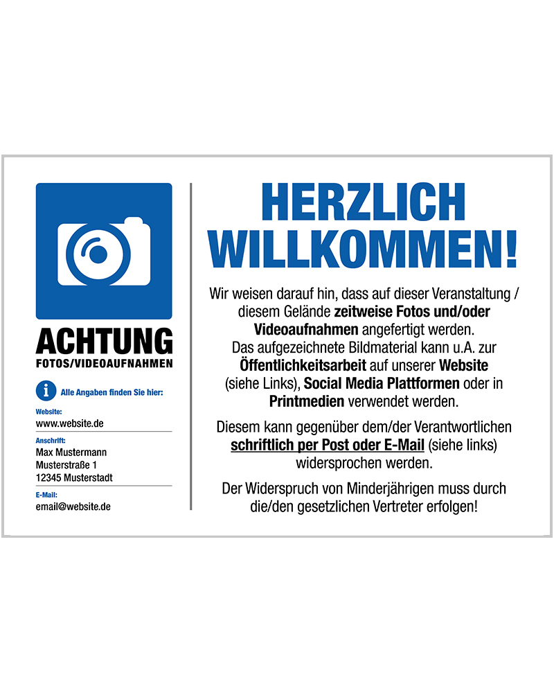 Alle Schilder und Banner sind mit Ihrem Logo und Namen individualisierbar. Die Personalisierung nehmen Sie nach der Bestellung vor.