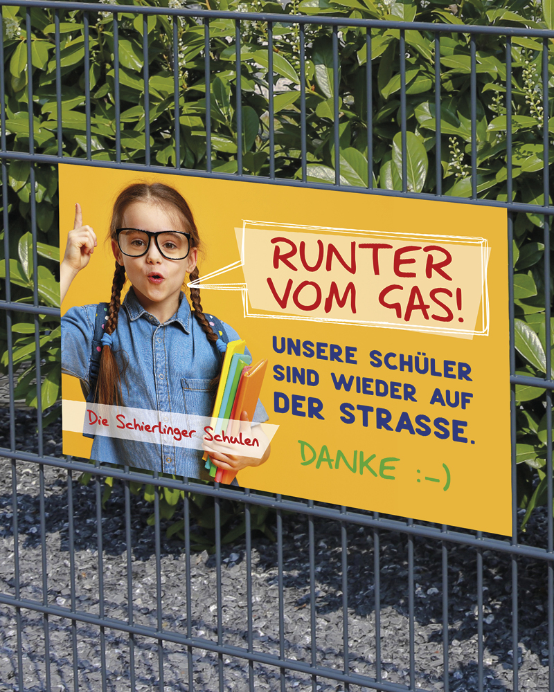 Alle Schilder und Banner sind mit Ihrem Logo und Namen individualisierbar. Die Personalisierung nehmen Sie nach der Bestellung vor.